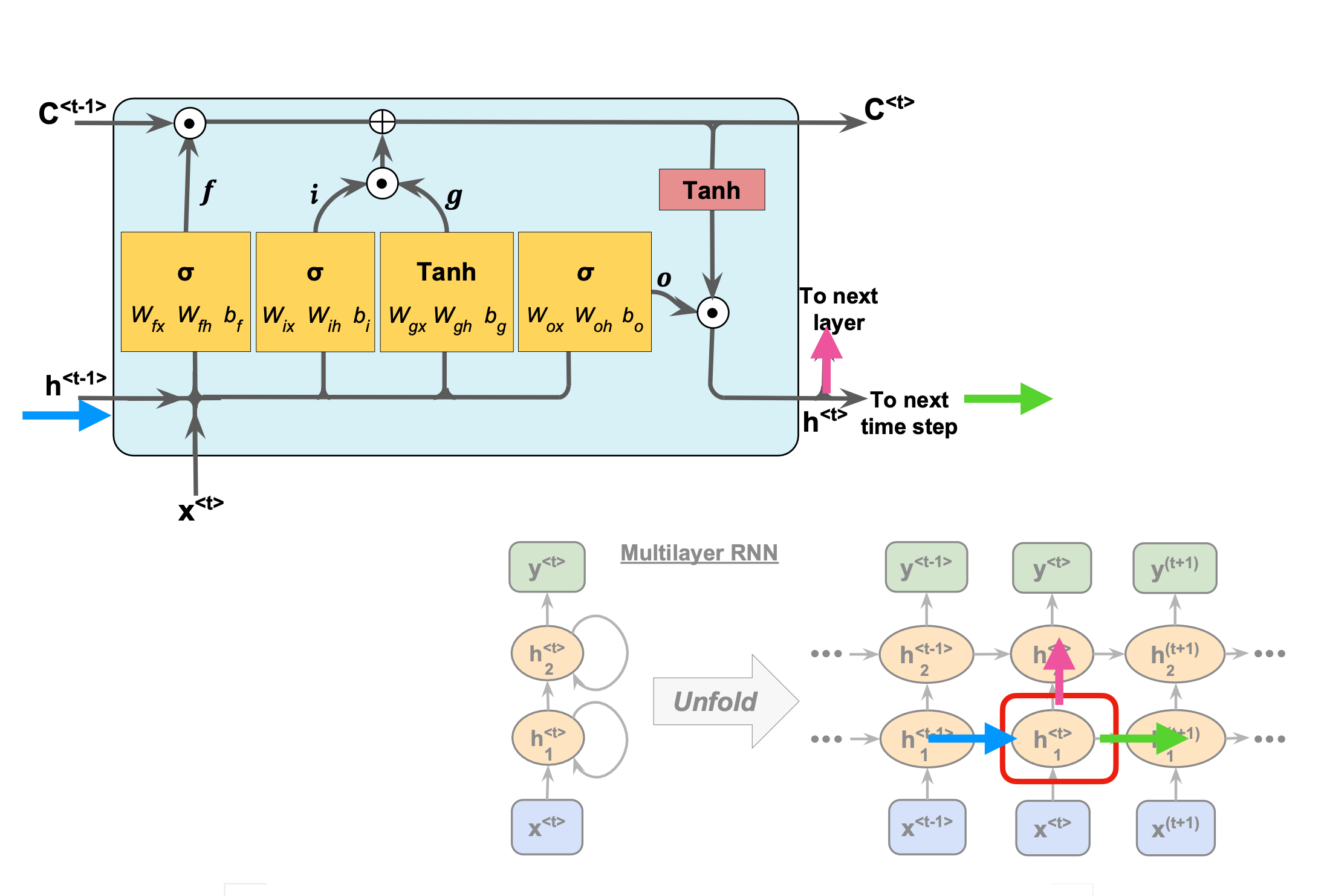 For RNNs, see Goodfellow et al chapter 10, see https://www.deeplearningbook.org/contents/rnn.html.